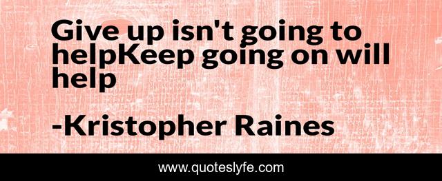 This page presents the quote "Give up isn't going to helpKeep going on will help". Author of this quote is Kristopher Raines. This quote is about faith, strength, hope, inspirational, enthusiasm,.