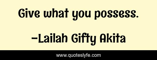 "Lailah Gifty Akita Quotes." Quoteslyfe.com, 2025. Sat. 06 Dec. 2025. <https://www.quoteslyfe.com/quote/Give-what-you-possess-71693>.