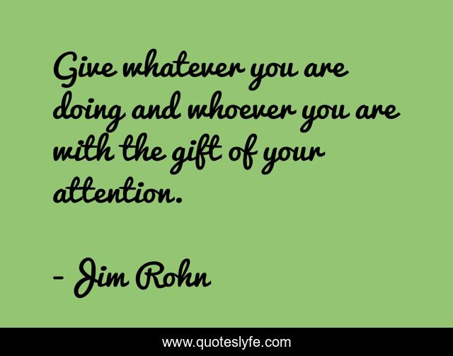 This page presents the quote "Give whatever you are doing and whoever you are with the gift of your attention.". Author of this quote is Jim Rohn. .