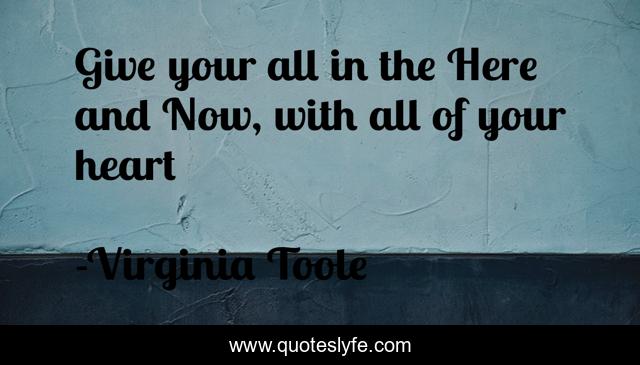 This page presents the quote "Give your all in the Here and Now, with all of your heart". Author of this quote is Virginia Toole. This quote is about heart, now, here, inspirational, enthusiasm,.