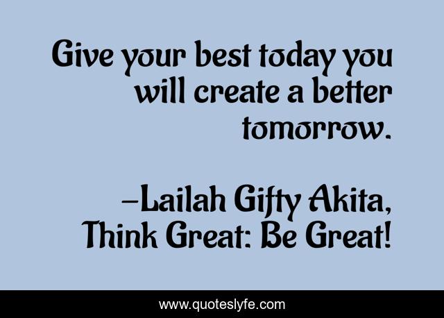 "Lailah Gifty Akita, Think Great: Be Great! Quotes." Quoteslyfe.com, 2025. Mon. 08 Dec. 2025. <https://www.quoteslyfe.com/quote/Give-your-best-today-you-will-create-34673>.