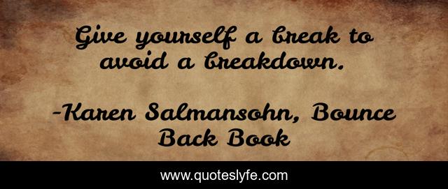 "Karen Salmansohn, Bounce Back Book Quotes." Quoteslyfe.com, 2025. Sun. 14 Dec. 2025. <https://www.quoteslyfe.com/quote/Give-yourself-a-break-to-avoid-a-148093>.