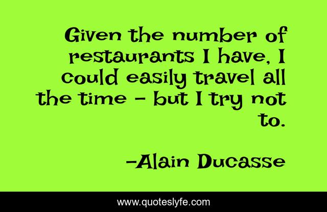 This page presents the quote "Given the number of restaurants I have, I could easily travel all the time - but I try not to.". Author of this quote is Alain Ducasse. This quote is about try, number, time,.
