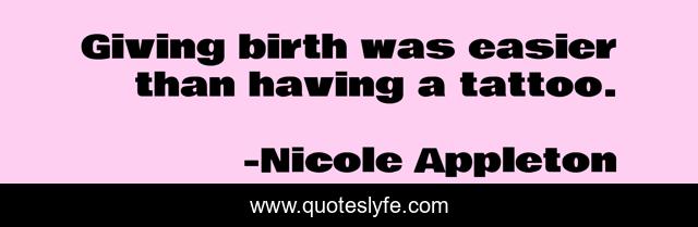 This page presents the quote "Giving birth was easier than having a tattoo.". Author of this quote is Nicole Appleton. This quote is about giving, easier, birth,.