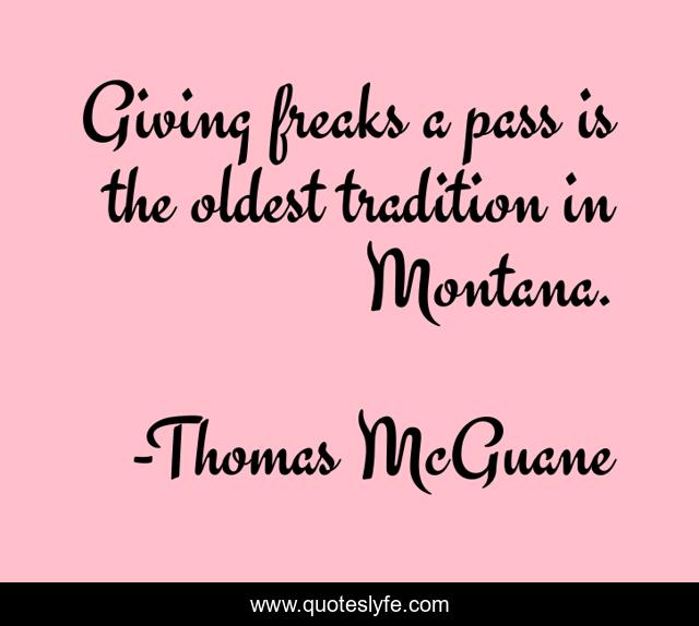 This page presents the quote "Giving freaks a pass is the oldest tradition in Montana.". Author of this quote is Thomas McGuane. This quote is about montana, tolerance, freaks,.