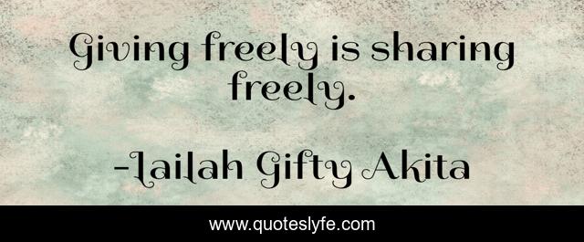 "Lailah Gifty Akita Quotes." Quoteslyfe.com, 2025. Sat. 06 Dec. 2025. <https://www.quoteslyfe.com/quote/Giving-freely-is-sharing-freely-236682>.