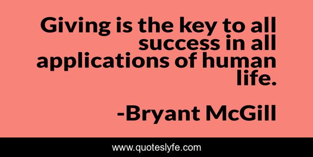 This page presents the quote "Giving is the key to all success in all applications of human life.". Author of this quote is Bryant McGill. This quote is about giving, human-life, success,.