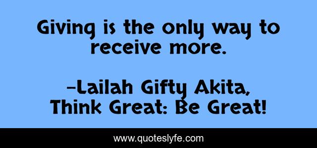 "Lailah Gifty Akita, Think Great: Be Great! Quotes." Quoteslyfe.com, 2025. Fri. 05 Dec. 2025. <https://www.quoteslyfe.com/quote/Giving-is-the-only-way-to-receive-98834>.