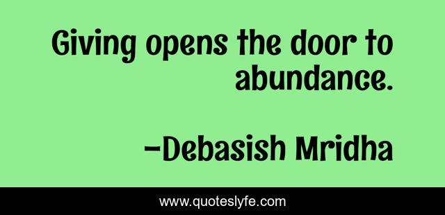 "Debasish Mridha Quotes." Quoteslyfe.com, 2025. Sat. 06 Dec. 2025. <https://www.quoteslyfe.com/quote/Giving-opens-the-door-to-abundance-206680>.