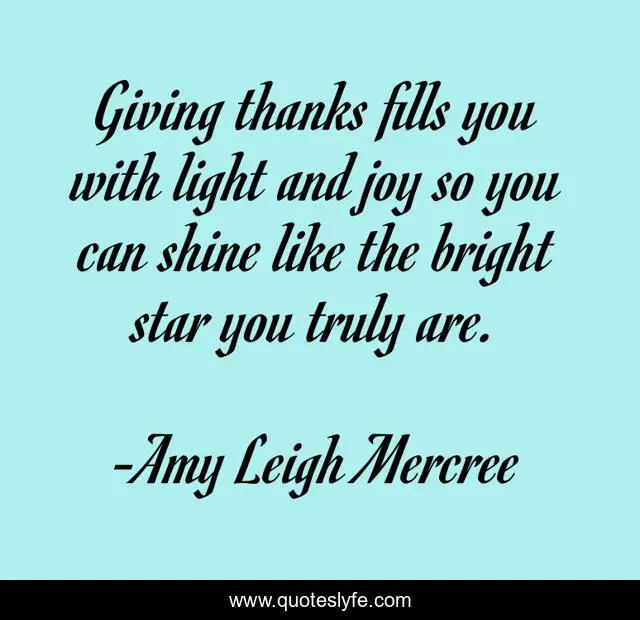 This page presents the quote "Giving thanks fills you with light and joy so you can shine like the bright star you truly are.". Author of this quote is Amy Leigh Mercree. This quote is about quotes-de-la-vida, amy-leigh-mercree, quote-of-the-day, thanksgiving, bright-star, quotes-tumblr, thanks, inspirational, quote-about-life,.