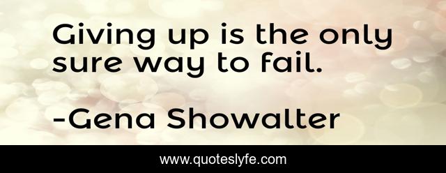 "Gena Showalter Quotes." Quoteslyfe.com, 2025. Fri. 05 Dec. 2025. <https://www.quoteslyfe.com/quote/Giving-up-is-the-only-sure-way-144801>.