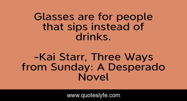 "Kai Starr, Three Ways from Sunday: A Desperado Novel Quotes." Quoteslyfe.com, 2025. Fri. 05 Dec. 2025. <https://www.quoteslyfe.com/quote/Glasses-are-for-people-that-sips-instead-248815>.