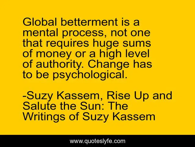 "Suzy Kassem, Rise Up and Salute the Sun: The Writings of Suzy Kassem Quotes." Quoteslyfe.com, 2025. Sat. 06 Dec. 2025. <https://www.quoteslyfe.com/quote/Global-betterment-is-a-mental-process-not-44060>.