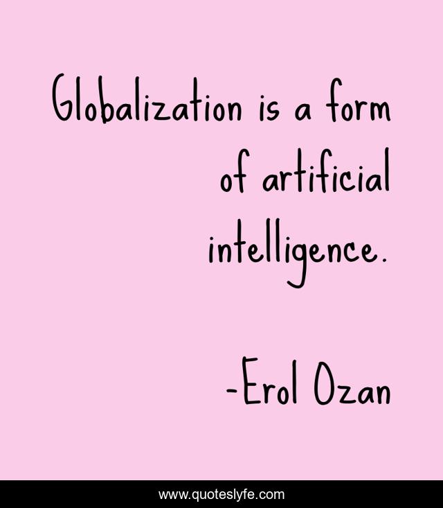 This page presents the quote "Globalization is a form of artificial intelligence.". Author of this quote is Erol Ozan. This quote is about multinational, ecology, globe, economics, mind, robot, robots, global, world-economic-crisis,.