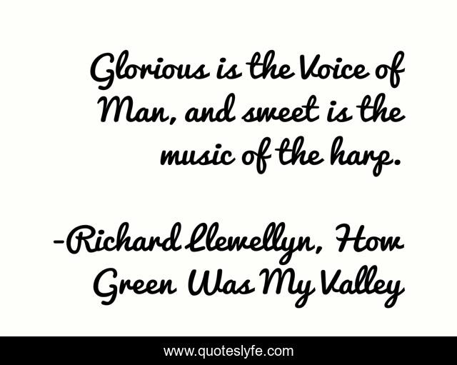 This page presents the quote "Glorious is the Voice of Man, and sweet is the music of the harp.". Author of this quote is Richard Llewellyn, How Green Was My Valley. This quote is about music, harp, singing, man,.
