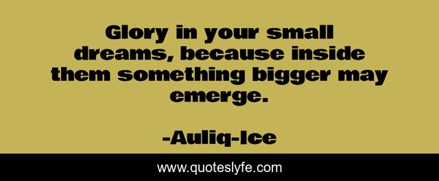 "Auliq-Ice Quotes." Quoteslyfe.com, 2025. Fri. 05 Dec. 2025. <https://www.quoteslyfe.com/quote/Glory-in-your-small-dreams-because-inside-60200>.
