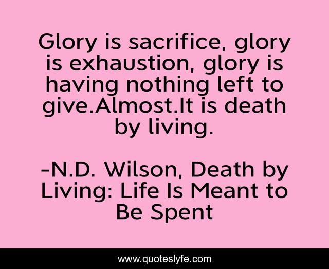"N.D. Wilson, Death by Living: Life Is Meant to Be Spent Quotes." Quoteslyfe.com, 2025. Sat. 06 Dec. 2025. <https://www.quoteslyfe.com/quote/Glory-is-sacrifice-glory-is-exhaustion-glory-190140>.