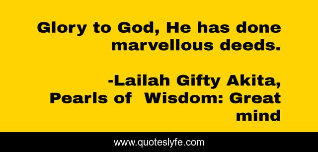 "Lailah Gifty Akita, Pearls of Wisdom: Great mind Quotes." Quoteslyfe.com, 2025. Tue. 09 Dec. 2025. <https://www.quoteslyfe.com/quote/Glory-to-God-He-has-done-marvellous-85290>.