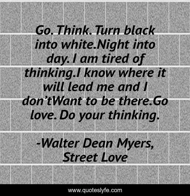 "Walter Dean Myers, Street Love Quotes." Quoteslyfe.com, 2025. Fri. 05 Dec. 2025. <https://www.quoteslyfe.com/quote/Go-Think-Turn-black-into-white-Night-163164>.