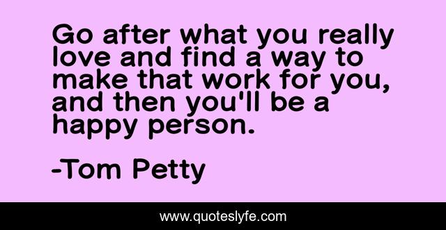 This page presents the quote "Go after what you really love and find a way to make that work for you, and then you'll be a happy person.". Author of this quote is Tom Petty. This quote is about work, happy,.