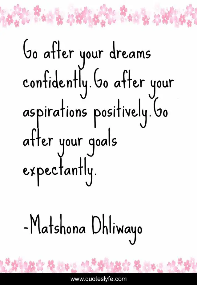 "Matshona Dhliwayo Quotes." Quoteslyfe.com, 2025. Fri. 05 Dec. 2025. <https://www.quoteslyfe.com/quote/Go-after-your-dreams-confidently-Go-after-208355>.