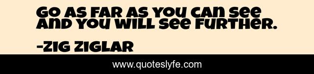 This page presents the quote "Go as far as you can see and you will see further.". Author of this quote is Zig Ziglar. This quote is about enthusiasm, motivation, inspirational, success,.