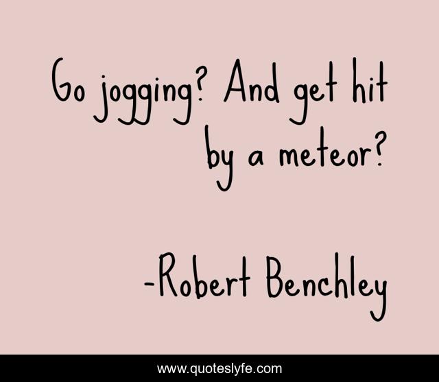 This page presents the quote "Go jogging? And get hit by a meteor?". Author of this quote is Robert Benchley. .