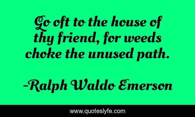 This page presents the quote "Go oft to the house of thy friend, for weeds choke the unused path.". Author of this quote is Ralph Waldo Emerson. This quote is about abandonment, loneliness, friends, visiting,.