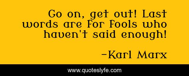 This page presents the quote "Go on, get out! Last words are for fools who haven't said enough!". Author of this quote is Karl Marx. This quote is about enthusiasm, last-words, humor, inspirational,.
