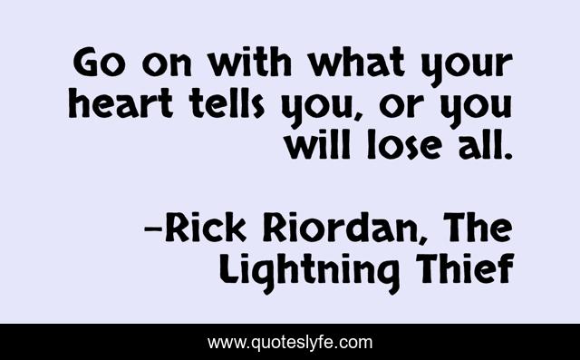 "Rick Riordan, The Lightning Thief Quotes." Quoteslyfe.com, 2025. Sat. 06 Dec. 2025. <https://www.quoteslyfe.com/quote/Go-on-with-what-your-heart-tells-3800>.