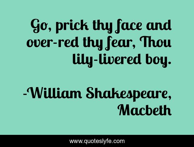 This page presents the quote "Go, prick thy face and over-red thy fear, Thou lily-livered boy.". Author of this quote is William Shakespeare, Macbeth. This quote is about amusing, insult, macbeth, shakespeare,.