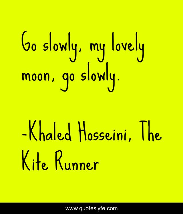 This page presents the quote "Go slowly, my lovely moon, go slowly.". Author of this quote is Khaled Hosseini, The Kite Runner. .