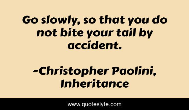 This page presents the quote "Go slowly, so that you do not bite your tail by accident.". Author of this quote is Christopher Paolini, Inheritance. This quote is about funny, comedy, truth, wisdom,.