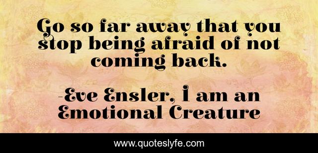 This page presents the quote "Go so far away that you stop being afraid of not coming back.". Author of this quote is Eve Ensler, I am an Emotional Creature. .