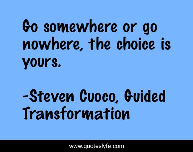 "Steven Cuoco, Guided Transformation Quotes." Quoteslyfe.com, 2025. Fri. 05 Dec. 2025. <https://www.quoteslyfe.com/quote/Go-somewhere-or-go-nowhere-the-choice-194097>.