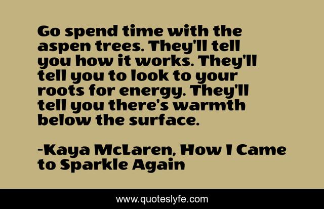 "Kaya McLaren, How I Came to Sparkle Again Quotes." Quoteslyfe.com, 2025. Fri. 05 Dec. 2025. <https://www.quoteslyfe.com/quote/Go-spend-time-with-the-aspen-trees-182826>.
