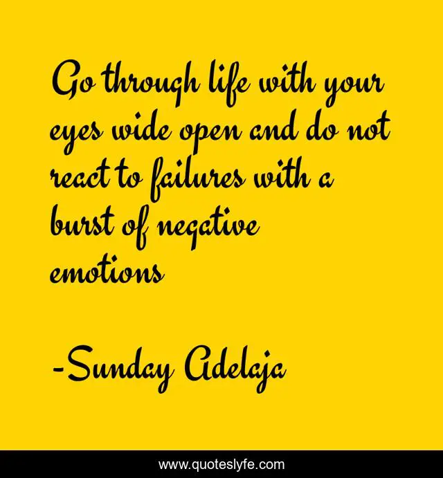 This page presents the quote "Go through life with your eyes wide open and do not react to failures with a burst of negative emotions". Author of this quote is Sunday Adelaja. This quote is about eyes, life, emotions, calling, negative, purpose, truth, failures,.