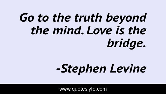 This page presents the quote "Go to the truth beyond the mind. Love is the bridge.". Author of this quote is Stephen Levine. This quote is about love, mind, affection, love is,.