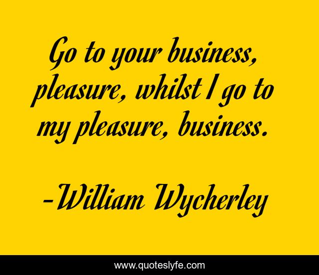 This page presents the quote "Go to your business, pleasure, whilst I go to my pleasure, business.". Author of this quote is William Wycherley. This quote is about go, pleasure, your,.