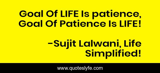 "Sujit Lalwani, Life Simplified! Quotes." Quoteslyfe.com, 2025. Sat. 06 Dec. 2025. <https://www.quoteslyfe.com/quote/Goal-Of-LIFE-Is-patience-Goal-Of-28790>.