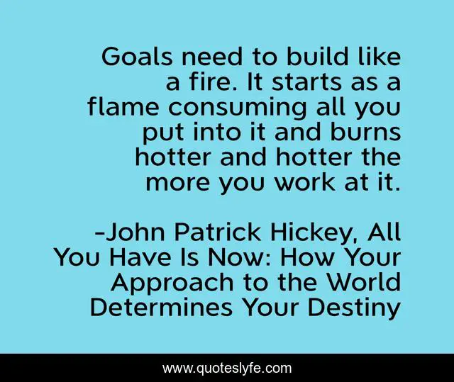 "John Patrick Hickey, All You Have Is Now: How Your Approach to the World Determines Your Destiny Quotes." Quoteslyfe.com, 2025. Fri. 05 Dec. 2025. <https://www.quoteslyfe.com/quote/Goals-need-to-build-like-a-fire-140772>.