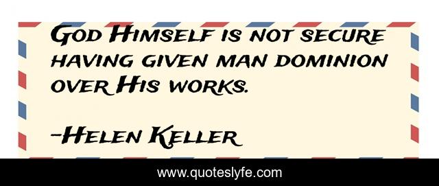 "Helen Keller Quotes." Quoteslyfe.com, 2025. Mon. 08 Dec. 2025. <https://www.quoteslyfe.com/quote/God-Himself-is-not-secure-having-given-275509>.