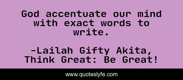 "Lailah Gifty Akita, Think Great: Be Great! Quotes." Quoteslyfe.com, 2025. Sat. 06 Dec. 2025. <https://www.quoteslyfe.com/quote/God-accentuate-our-mind-with-exact-words-85133>.