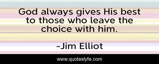 This page presents the quote "God always gives His best to those who leave the choice with him.". Author of this quote is Jim Elliot. This quote is about god, best, choice,.