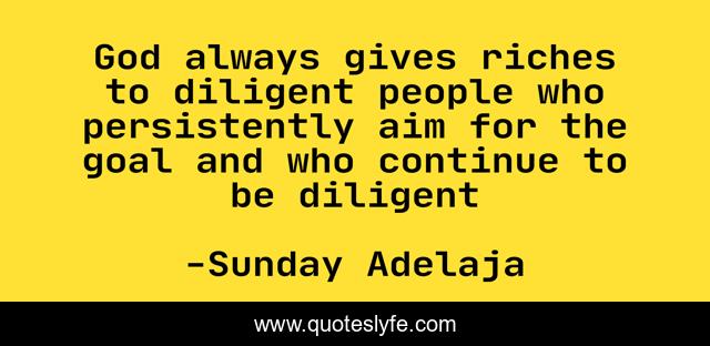 This page presents the quote "God always gives riches to diligent people who persistently aim for the goal and who continue to be diligent". Author of this quote is Sunday Adelaja. This quote is about diligence, god, endurance, blessing, riches, persistence,.