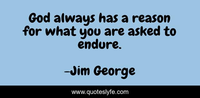 This page presents the quote "God always has a reason for what you are asked to endure.". Author of this quote is Jim George. This quote is about faith, believe, christian, god, reason, endure, trust,.