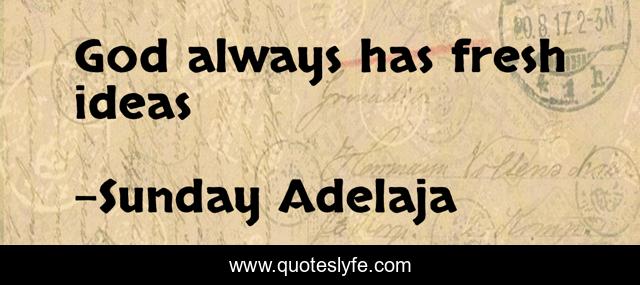 "Sunday Adelaja Quotes." Quoteslyfe.com, 2025. Sat. 06 Dec. 2025. <https://www.quoteslyfe.com/quote/God-always-has-fresh-ideas-205259>.
