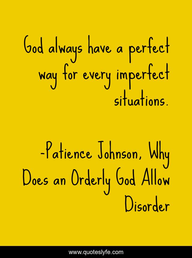 "Patience Johnson, Why Does an Orderly God Allow Disorder Quotes." Quoteslyfe.com, 2025. Fri. 05 Dec. 2025. <https://www.quoteslyfe.com/quote/God-always-have-a-perfect-way-for-33999>.