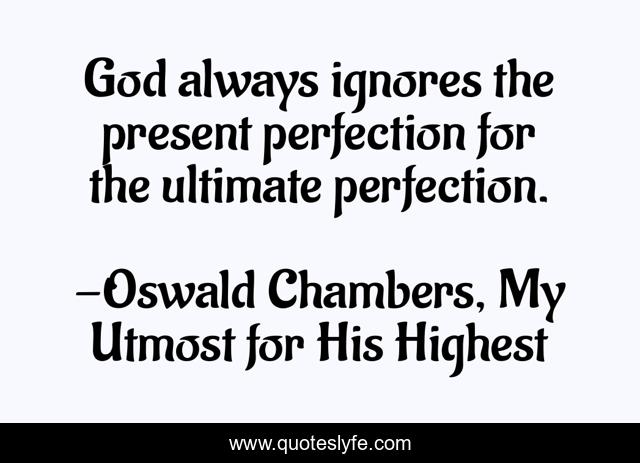 "Oswald Chambers, My Utmost for His Highest Quotes." Quoteslyfe.com, 2025. Mon. 08 Dec. 2025. <https://www.quoteslyfe.com/quote/God-always-ignores-the-present-perfection-for-11428>.