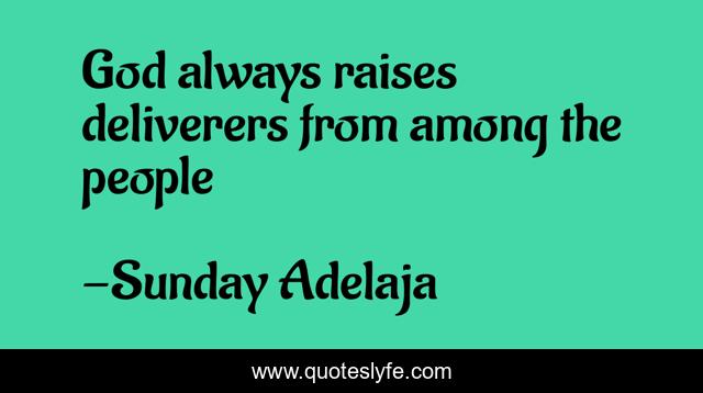 This page presents the quote "God always raises deliverers from among the people". Author of this quote is Sunday Adelaja. This quote is about god, deliverers, raises, people,.